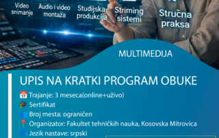 Планови кратких програма обуке у оквиру WBNET Еразмус+ пројекта Примењене информационо-комуникационе технологије ЛИНК Мултимедија ЛИНК Обавештавамо вас да је у току позив за упис кандидата на кратке програме обуке - Примењене информационо комуникационе технологије и Мултимедија у оквиру међународног Еразмус+ пројекта WBNET. Пријава кандидата и предаја документације врши се електронским путем, попуњавањем пријавне форме на линку: Детаљне информације за [...]