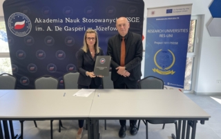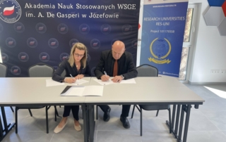 The Rector of the University of Priština with temporary seat in Kosovska Mitrovica, Prof. Dr. Nebojša Arsić, and the Rector of the Academy of Applied Sciences “A. De Gasperi” in Józefów (AWSGE), Prof. Dr. Magdalena Sitek, have signed a cooperation agreement, establishing a framework for strengthening inter-university relations as a continuation of the collaboration initiated within the Erasmus+ project RES-UNI.